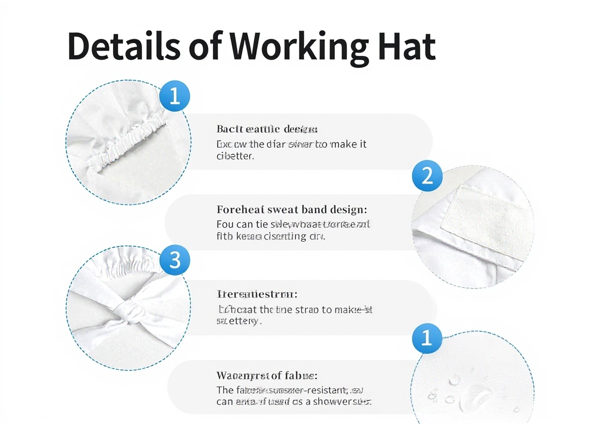 Diese Arbeitsmütze von WZYCWB besteht aus hochwertigem 100% Polyester-Gewebe, das speziell für schweißabsorbierende und atmungsaktive Eigenschaften entwickelt wurde. Das Material ist weich, hautfreundlich und bietet lang anhaltenden Tragekomfort auch bei intensiver körperlicher Betätigung. Das verstellbare Spitzendesign ermöglicht eine individuelle Anpassung an verschiedene Kopfformen.