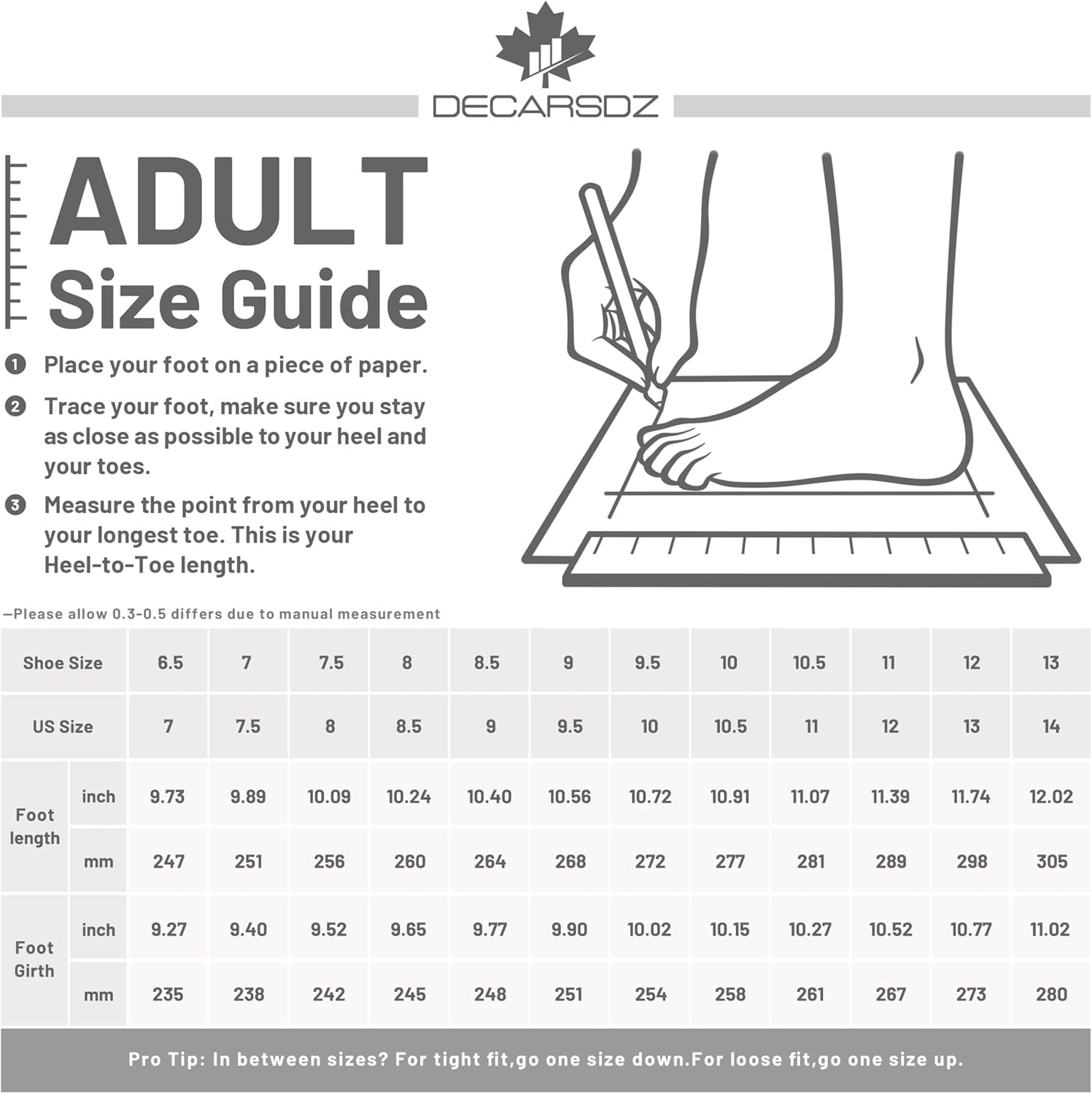 Die Größen entsprechen der standardmäßigen EU-Norm. Messen Sie Ihre Fußlänge und vergleichen Sie sie mit der Größentabelle, um die passende Größe zu finden. Bei Zwischengrößen wählen Sie die nächstgrößere Option.